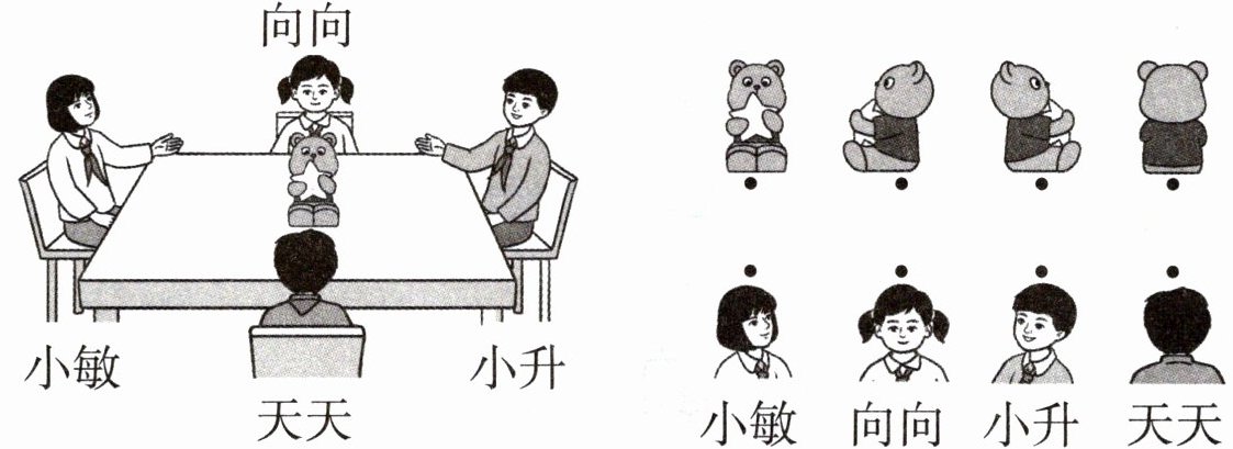 一、下面右边的四幅图分别是谁看到的?连一连。