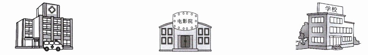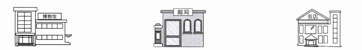 1. library 2. post office 3. cinema 4. science museum 5. bookstore 6. park