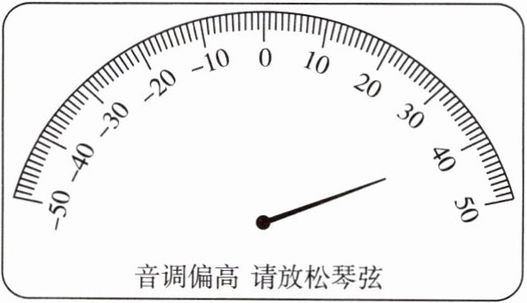 举一反三 某古筝调音器软件调音时 的界面如图所示。已知古筝是标准音时,界面指针指向 $0$,指针指向 $40$ 表示音调高于标准音 $40$,需放松琴弦。当古筝的音调低于标准音 $30$ 时,该界面指针指向的数字是(