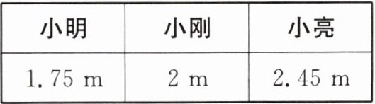 典例 2 下表是小明、小刚、小亮在某节体育课上的立定跳远测试成绩。