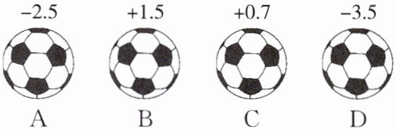 3. 生产厂家检测 $4$ 个足球的质量,检测结果如图所示,超过标准质量的克数记作正数,不足标准质量的克数记作负数,下列 $4$ 个足球中最轻的是( )