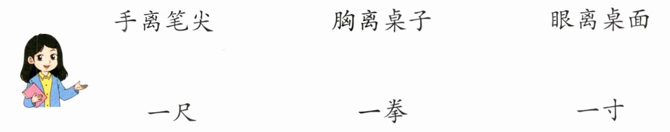 手离笔尖一寸,胸离桌子一拳,眼离桌面一尺。