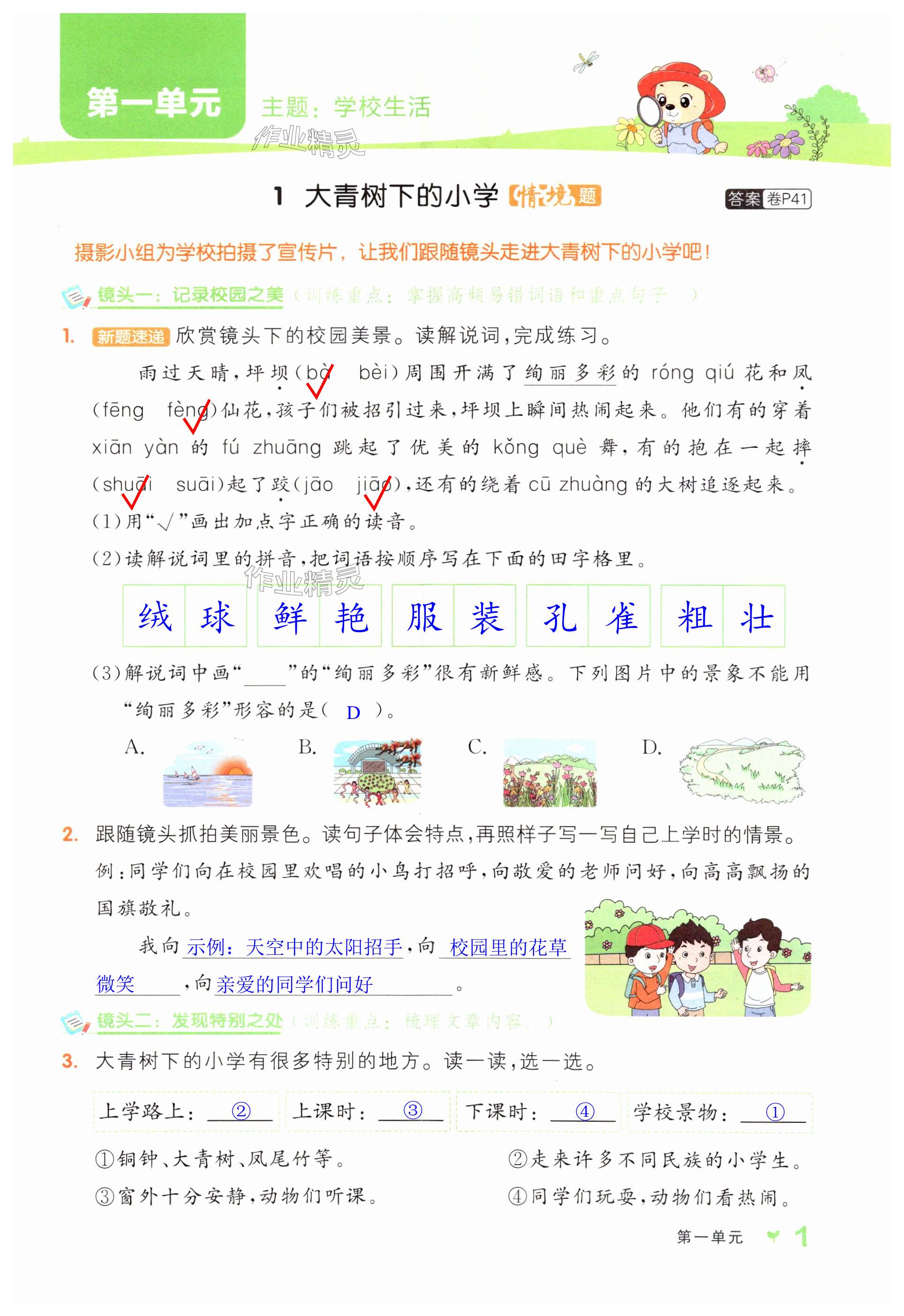 注:目前有些书本章节名称可能整理的还不是很完善,但都是按照顺序排列的,请同学们按照顺序仔细查找。练习册 2024年全品学练考三年级语文上册人教版浙江专版 答案主要是用来给同学们做完题方便对答案用的,请勿直接抄袭。