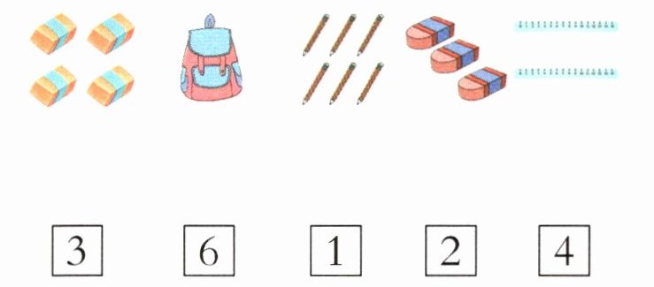 5. 实验班原创 数感 我上一年级了,妈妈帮我买了下面这些文具,数一数,连一连。