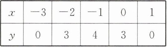 由表格,可知{x=-1,y=4,{x=0,y=3,{x=1,y=0均满足二次函数y=ax²+bx+c,将上述各对值代入函数表达式得{a-b+c=4,c=3,a+b+c=0,解得{a=-1,b=-2,c=3,故这个二次函数的表达式为 y=-x²-2x+3.
