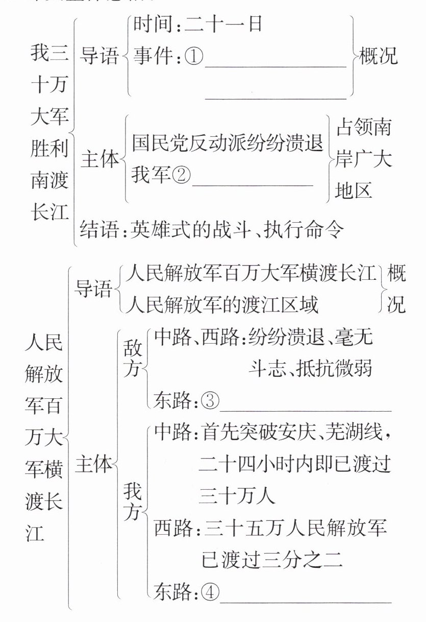 3.①人民解放军已有大约三十万人渡过长江 ②直取对岸 ③抵抗较为顽强 ④各军已大部渡过南岸