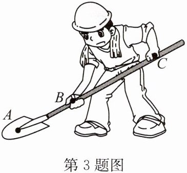3. 如图所示,如果把铁锹看成是费力杠杆,则图中A、B、C三点,支点是