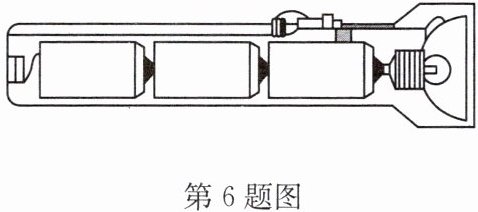 6. 如图所示,手电筒中的电流为0.6A,电源为三节干电池,则该手电筒中的小灯泡工作1min消耗的电能约为(