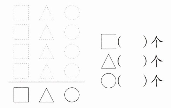 【点拨】由于分类标准不同,分类的结果也不同,但总数必须相同。数个数时,做到不重复、不遗漏;涂色时,应从下面开始涂起,同时要一一对应。
