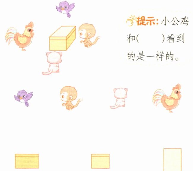 提示:小公鸡和( )看到的是一样的。