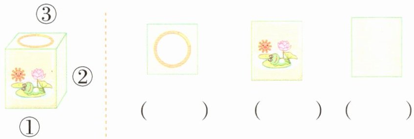 3.下面右边的三幅图分别是从哪个位置看到的?把相应的序号填在括号里。