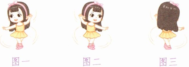 [点拨]重点看小女孩两只手的位置。图一能看到小女孩左手向上举,右手在身侧;图三虽然是背面,但同样是左手向上举,右手在身侧。而图二中小女孩是右手向上举,左手在身侧。