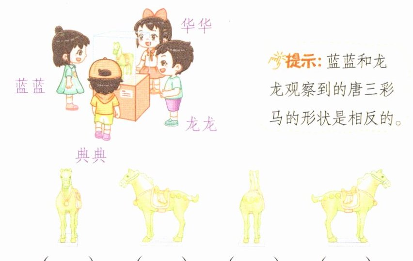 提示:蓝蓝和龙龙观察到的唐三彩马的形状是相反的。