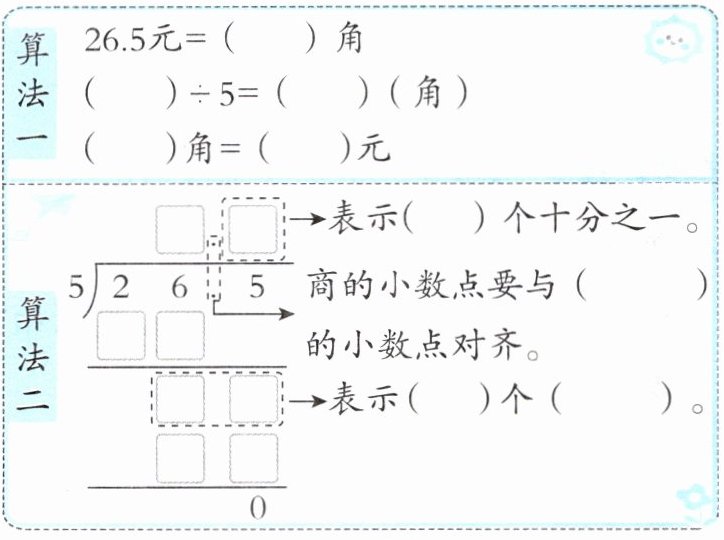1. 新情境·地理标志 景德镇陶瓷是国家地理标志产品,是中国的陶瓷品种之一。李阿姨在景德镇旅游时买了5个小茶杯,花了26.5元,每个小茶杯多少元?