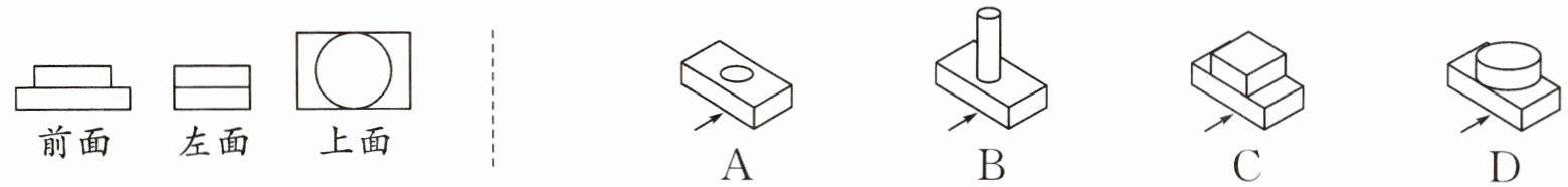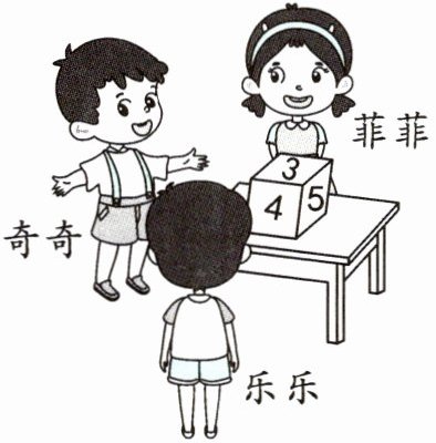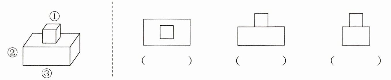 三 观察左图,右边的三幅图分别是从哪个位置看到的?填一填。
