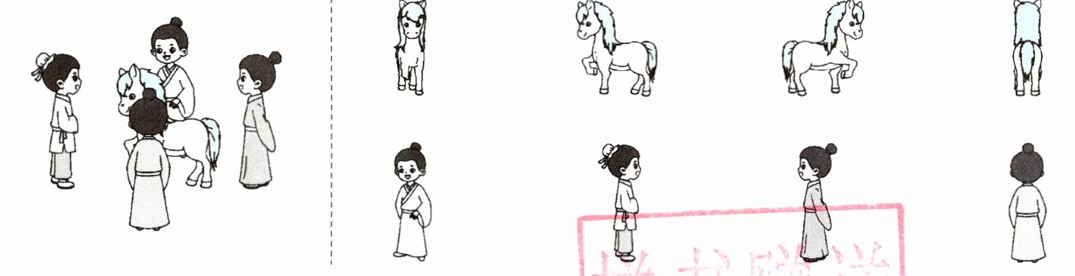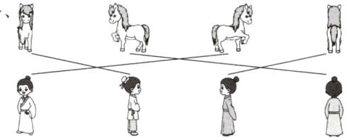 一 [新情境]有一次,董卓送给吕布一匹赤兔马,吕布十分高兴,带领部下去看赤兔马。吕布和几位部下看到的分别是什么?连一连。