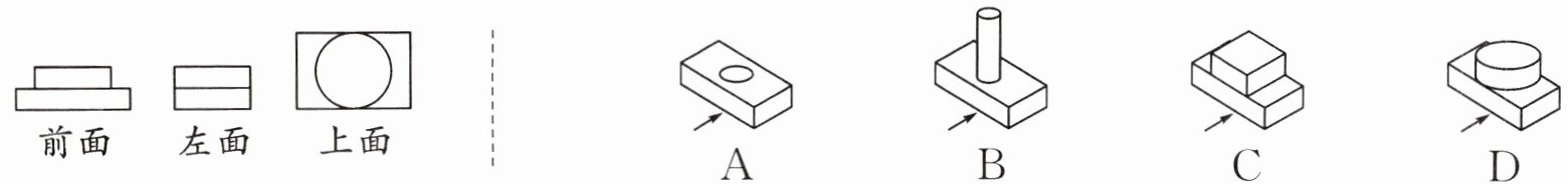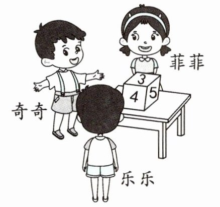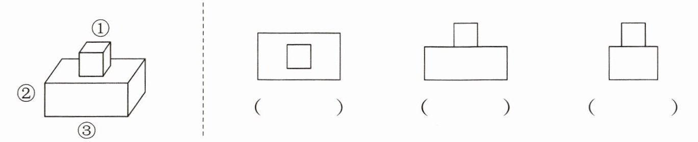 三观察左图,右边的三幅图分别是从哪个位置看到的?填一填。