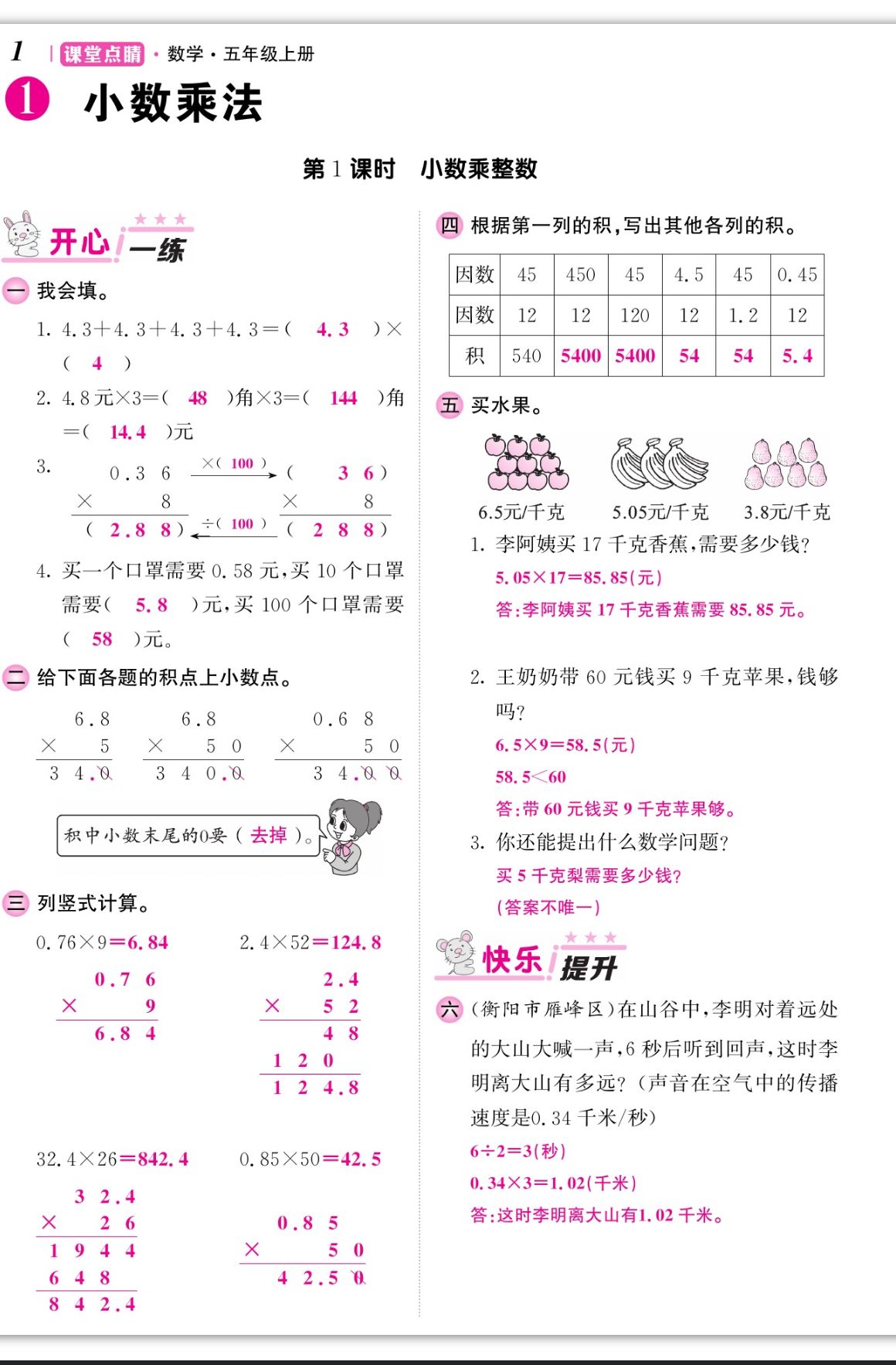 注:目前有些书本章节名称可能整理的还不是很完善,但都是按照顺序排列的,请同学们按照顺序仔细查找。练习册 2023年课堂点睛五年级数学上册人教版 答案主要是用来给同学们做完题方便对答案用的,请勿直接抄袭。
