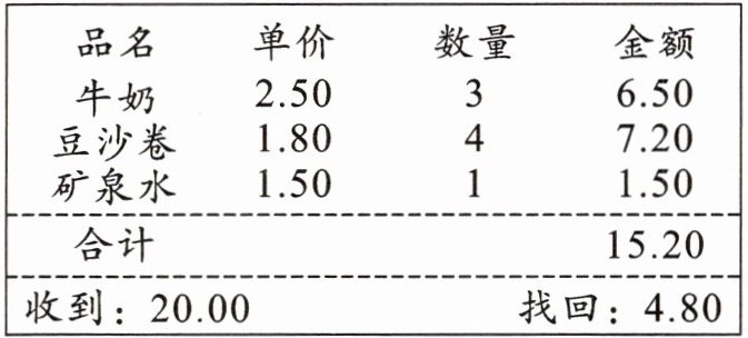 四 (情境题)下面是一张超市购物小票,根据提供的信息,你能核实一下这张购物小票是否正确?写出过程。