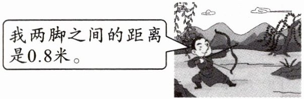三 “百步穿杨”中的“步”,在古代是指行走时两脚之间距离的 2 倍。下图中的小将军站在离树一百步的地方射箭,请算出小将军与树之间的距离。