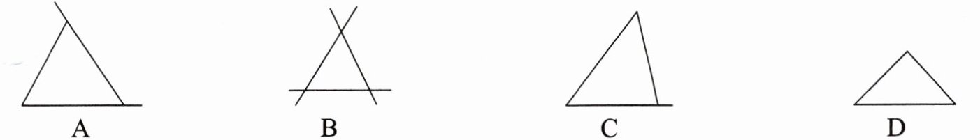 1. 下面是一位同学用三根木棒拼成的图形,其中符合三角形概念的是(