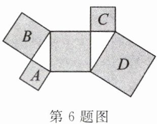 6.(北京四中月考)如图,所有阴影部分四边形都是正方形,所有三角形都是直角三角形,若正方形$A$,$C$,$D$的面积依次为 4,6,18,则正方形$B$的面积为(