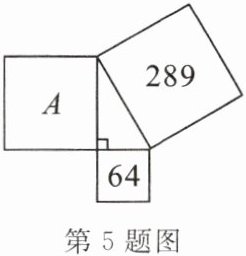 5.(教材第 3 页随堂练习第 1 题变式)如图,已知两个正方形的面积分别为 64,289,则字母$A$所代表的正方形的面积为(