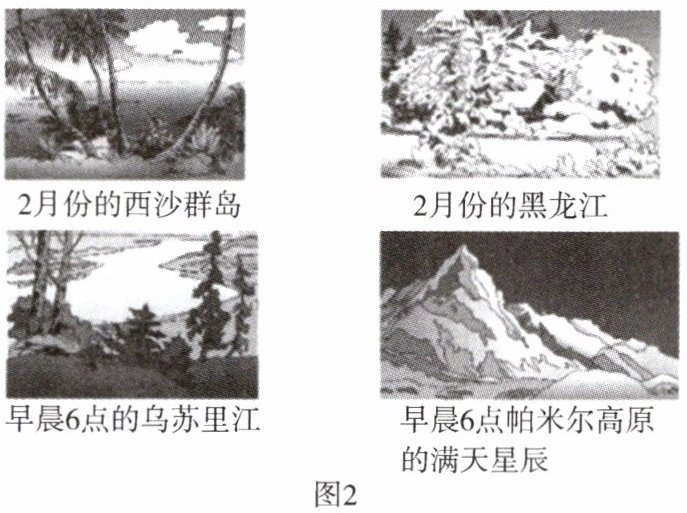 C.黑龙江和西沙群岛2月份景观差异反映了我国南北纬度跨度大