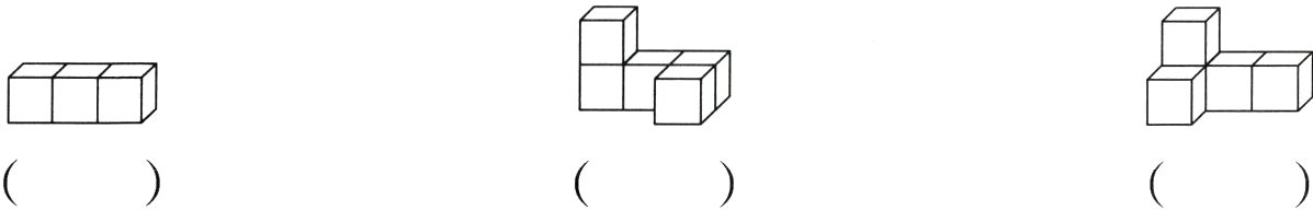 3.[保定市]小丽用同样大小的正方体搭出了下面的立体,根据要求选择适当的序号填在下面的括号里。