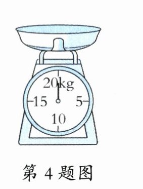 4. 一个盘秤如图所示,如果放上物体后这个盘秤的指针顺时针旋转了180°,那么说明该物体的质量是( )kg。
