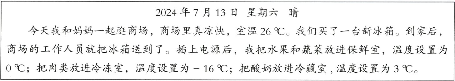 把日记中出现的温度从低到高进行排列:( )℃ < ( )℃ < ( )℃ < ( )℃。