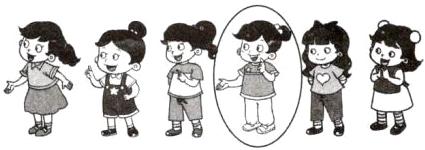 2. 小洁和小朋友们排队做游戏,她前面有 3 个小朋友。小洁站在什么位置?请你圈出来。