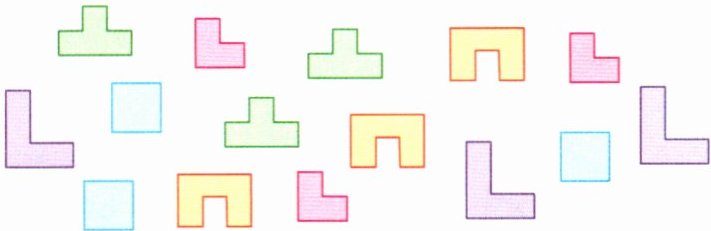 4. 巧用下面的积木拼一幅趣味图画。(不是每块积木都要用)