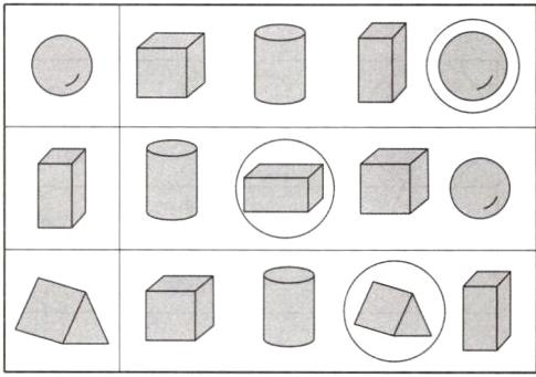 (2)圈出和左边形状相同的积木。