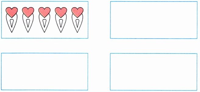 4.(应用意识)笑笑把自己的发夹摆得整整齐齐,用加法算式表示为5+5+5+5= 20。请根据算式将发夹摆到下面的框里。(用1个“○”表示1个发夹,画一画)