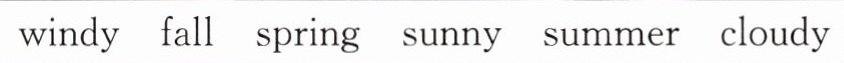 1. fall; spring; summer 2. windy; sunny; cloudy