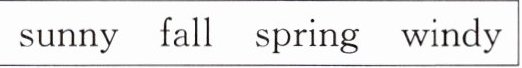 1. windy 2. spring 3. sunny 4. fall