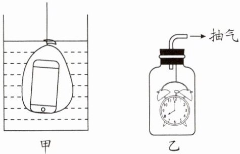 (2)如图甲所示,将手机装入塑料袋,扎紧袋口后用细线悬于水中,用另一部手机拨打袋中的手机,手机接通后仍能听到手机发出的铃声,这说明声音可以在______中传播.