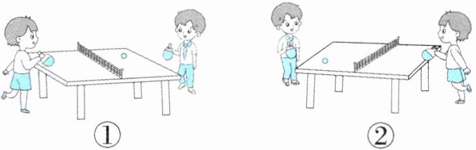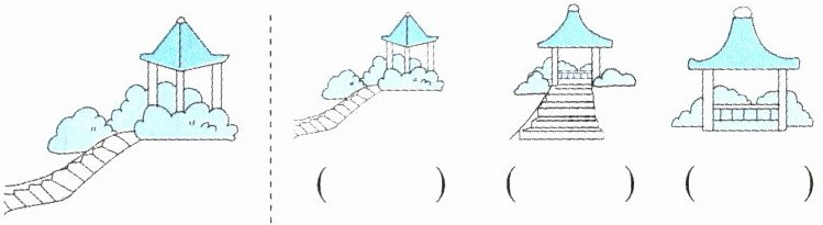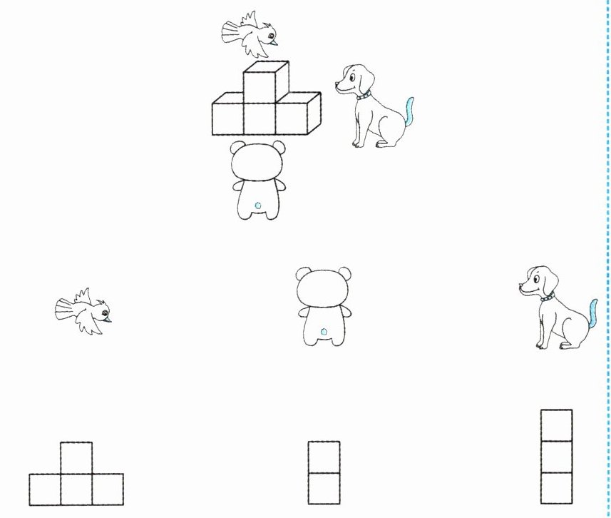 5. 小明一家三口在登山,小明在最前面,爸爸在中间,妈妈在最后面。下面右边的三幅图分别是谁看到的?