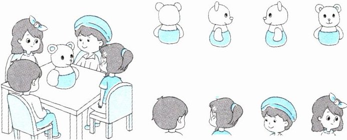 1. 下面右边的四幅图分别是谁看到的?连一连。