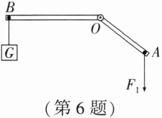 6. (2023·南通中考)如图,杠杆AOB保持静止,O为支点,请作出动力$F_1$的力臂$l_1$和阻力$F_2.$