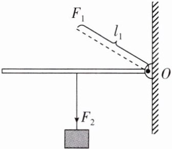 8. (2024·苏州外国语学校月考)如图所示,杠杆在力$F_1、$$F_2$的作用下处于静止状态$,l_1$是力$F_1$的力臂,请在图中作出$F_2$的力臂$l_2$和力$F_1$的示意图.