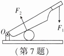 7. 如图所示,作出铡刀的两个力臂,并标明$l_1$和$l_2.($保留作图痕迹)