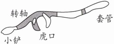 D 解析:将小铲着地,整个杠杆是绕着小铲转动的,故小铲为杠杆的支点;要让杠杆转动,在套管上用力,故套管为动力作用点;虎口处夹着棉秆,棉秆会对虎口处施加一个阻碍杠杆转动的力,故虎口为阻力作用点.所以支点、动力作用点、阻力作用点对应的位置分别为:小铲—套管—虎口.故D正确.
