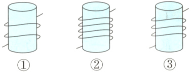 2. 三根绳子分别绕在3个大小相同的杯子上,( )中绳子最长?(填序号)