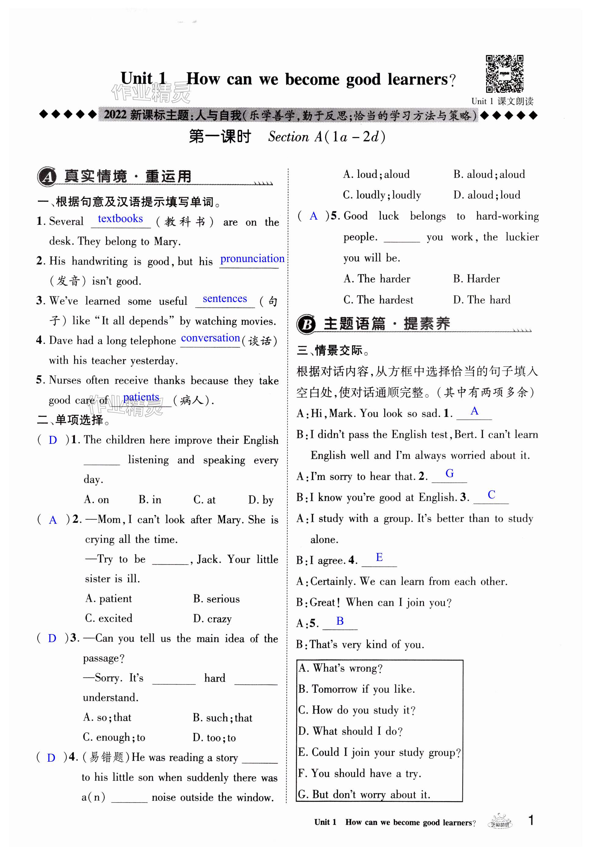 注:目前有些书本章节名称可能整理的还不是很完善,但都是按照顺序排列的,请同学们按照顺序仔细查找。练习册 2024年精英新课堂九年级英语上册人教版 答案主要是用来给同学们做完题方便对答案用的,请勿直接抄袭。