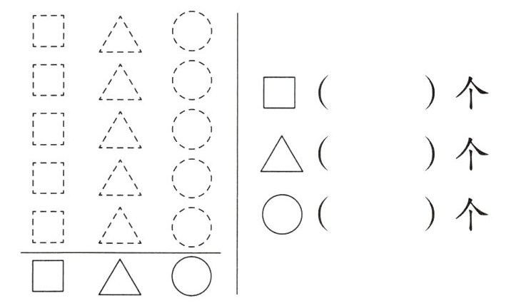 3. 按图形的形状分一分,再涂一涂,填一填。