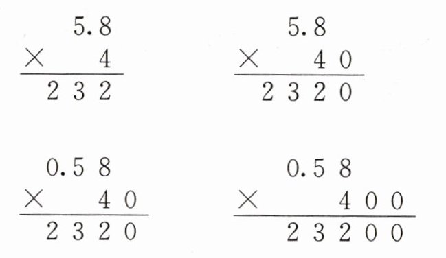 $\end{array}$ $$\begin{array}{r}$5.8 \\$× \quad 40 \\$$\hline$2320$\end{array}$ $