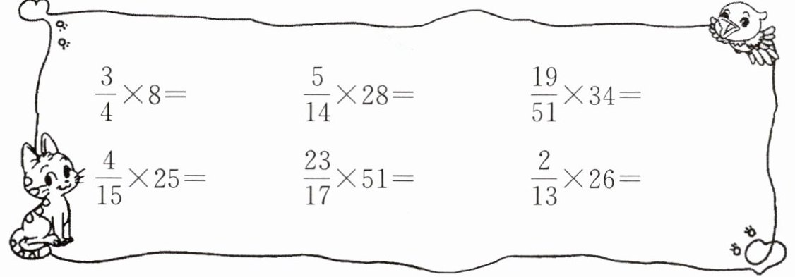 (1)$\frac{1}{6}+\frac{1}{6}+\frac{1}{6}=\frac{1}{2}$ $\frac{1}{6}× 3=\frac{1}{2}$(2)$20× \frac{2}{5}=8$