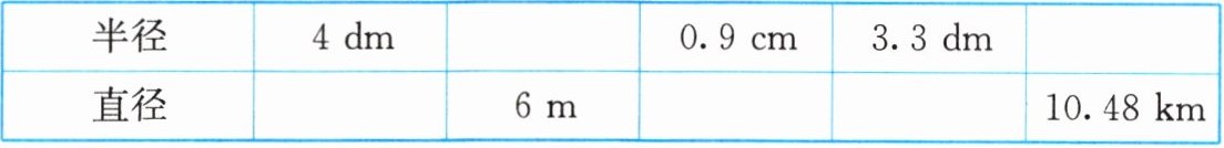 |半径|4dm| |0.9cm| |3.3dm| |
